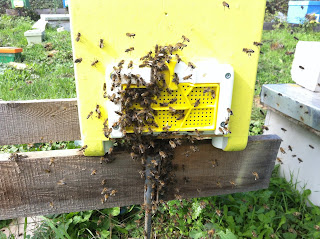 Bölünen arılar bir gün kalapı kaldılar, bazıları kaçak yaptı onların muslukları açıldı.Bir gün sonra yanlarına koyduğumuz kutulardaki arılarla ana arılar kafese alınarak birleştirildi.