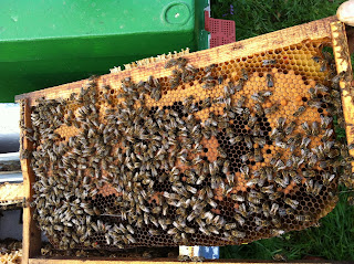 Sonrasında damızlık erkek kovanlarına daldım, bu arı yasminin kızlarından birisi, 8 çıtada kışlıyordu, 6 çıta yavrusu var. Yazın bunun balını almıştım yanımda fırça olmadığı için arıları otlarla sildiğim kovan, sabit bahçede 12 çıta balını aldım.