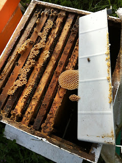 Pelitlide bir başka kovan buda erkek üretiminde kullanılan damızlıklardan. Buda dalak atmış. Beş çıtayla kışa girmişti, iki çıta daha girdim hafta sonuna buna da erkek çıtası girmeliyim.