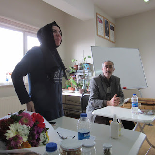 Kurs yönetici, müdüre hanımda bizlere ve kursiyerlere teşekür etti, birde bize çiçek verdiler çiçek evde sorun oldu, başımızı belaya sokmayın böyle şeyler yapıp :))