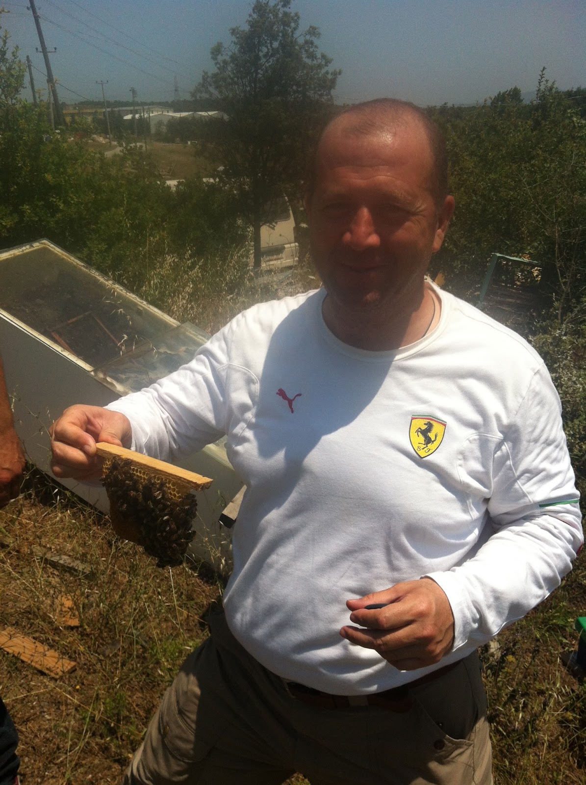 Belediye personelimiz Tevfik Uysal, Bilal ile birlikte gelmişler. Arıdan çok korkuyormuş gel seni alıştıralım dedik :)