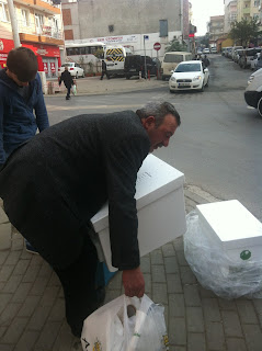 Kocaeli arıcılar birlik başkanımız Hüseyin Yılmaz, temel petek satış yerinde bulduk. Biraz sonra buradan bizi kovacaklar, yapılan satışların tahsilatını yapacakları yerde durmuşuz üç beş kişi daha geldi ve içerisi kilitlendi.