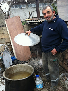 Şurup soğumayı bekliyordu, soğuduktan sonra arılara verilecek.