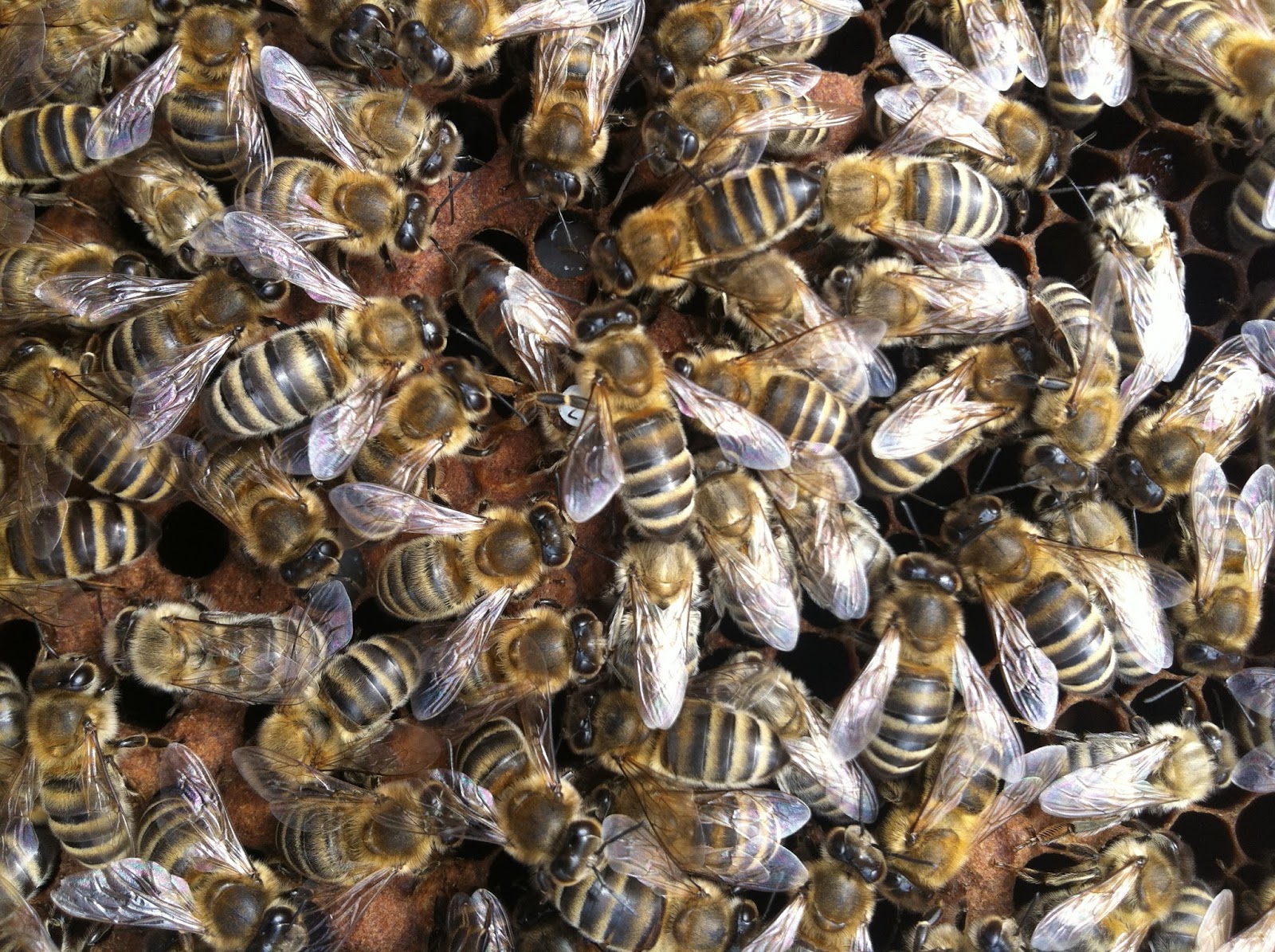 Bu F1 emmi kızı, 3 çıtada yavru faliyeti var ama ana arıya üç çıta az gelmekte, bazı gözlere iki bazı gözlere dört bazı gözlere beş yumurta bırakıyor.