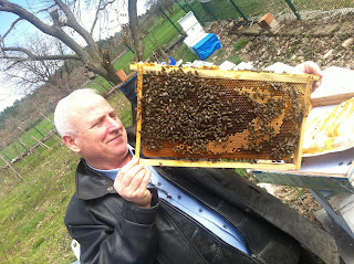 Cumatresi günü aile doktumuz ve doktorumuz İsmail abiyi ziyaret ettik.Arılarından biri ölmüş, bahara çıkan, yavrusu ve balı olan arı nasıl söndü anlamadım. Ölen arısının yerine kışlamış bir kutu silkeleyerek doldurduk.