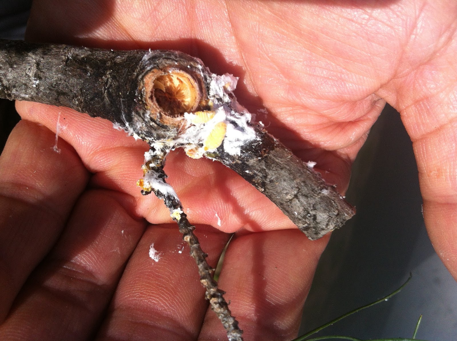 Bu dallarda görünen böceklerin işi bitmiş bizim asıl kullanacağımız gözümüzün görmediği böceğe ait yumurtalar. Yumurtalarda doğan böcekler, her yıl işini yapıp,ölüyor, ölmedende yumurtasını bırakıp neslini devam ettirmekte. Ben tohumları attım, bal vermeyen çam utansın :))