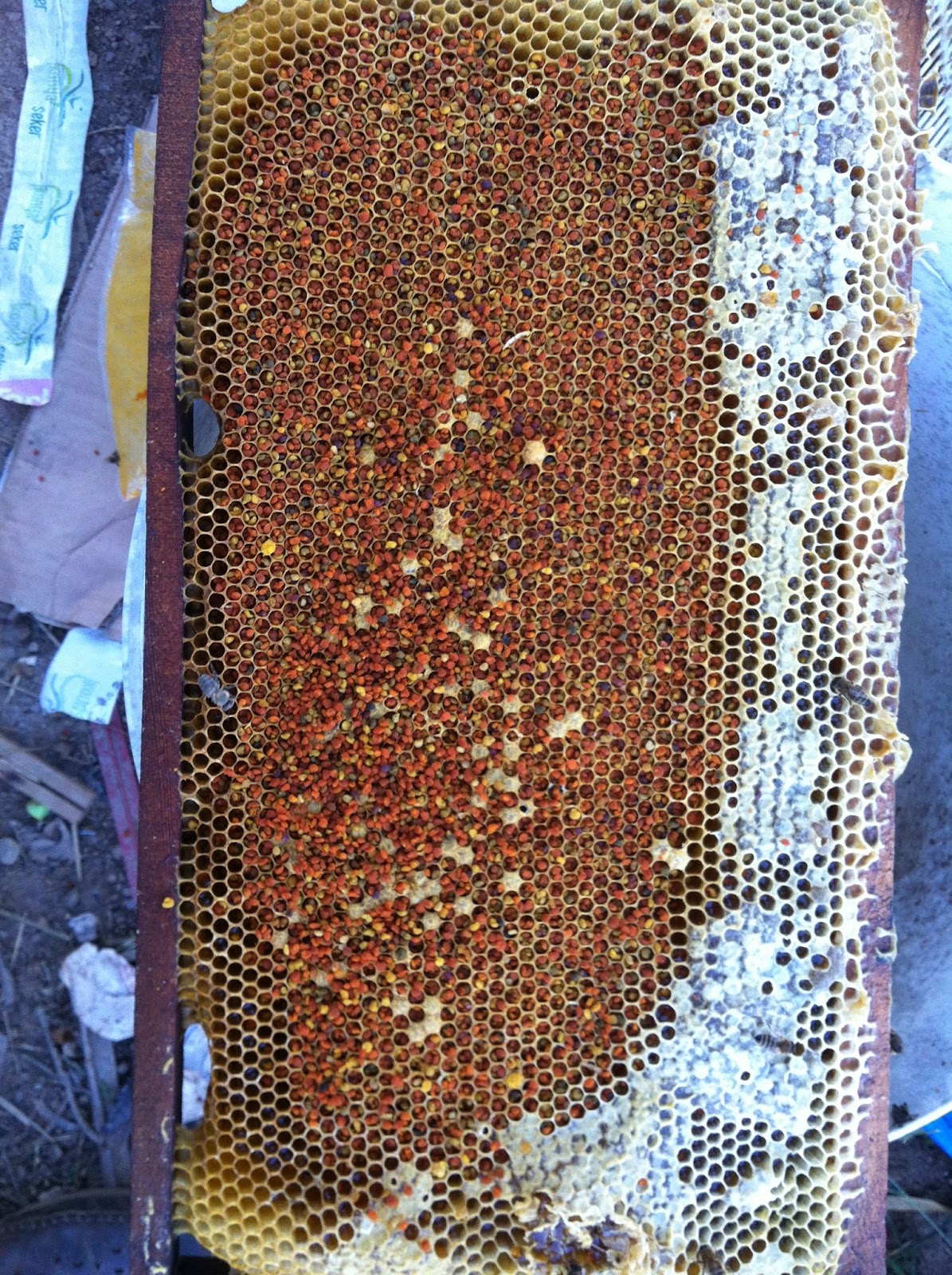 Arıcılığın her bölümü Ramazan ayında zor. Mevsim gelip geçiyor, mecbur sezonu iyi kullanmaya çalışıyorsunuz. Yakın gelecekte artık erkek arılar azalacak, şu an verdiğimiz petege erkek basan üç kovanımız var, yumurtalar çatladığında anasız kovanlara alıyoruz, her çıta 5 bin erkek demek.Mollafenariden Bilal uğradı laboratuvar ortamı bumudur dedi :)