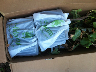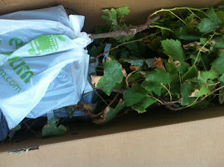 Gelen üzüm fidanlarını küçük saksılardan büyük saksılara aldım.