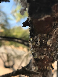 Sahildeki çamlara baktık çam balı sıcaktan dışı kabuk bağlamış, Çiğ veya yağmur olmadan arı çamdan balı alamıyor.