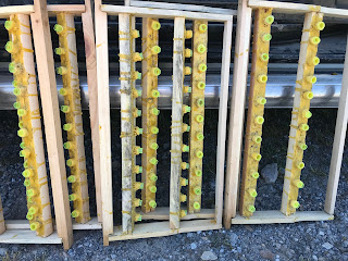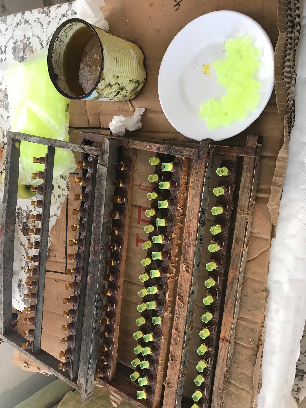 4 Bölme bize 4 bölmede Aziz Mumcu abiye larva transferi yapıldı.Aziz abi analar kaliteli olsun diye kendisi büyük ana arı yüksükleri yapıyor arının içine boşken koymuştuk gözler bozulmuş gözlerin içine benim çanakları soktum.