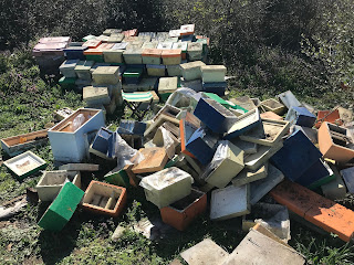 Ana arı üretimini başlatmak için metro kovanlarıma 4-5 çıtalık arıları silkeleyip kutulara bölme yapıyorum.