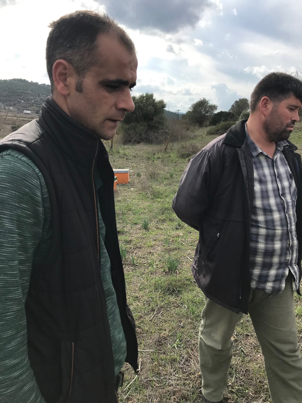 Biz arıları kontrol ederken, Konya Akşehir'den Selim geldi. Muğlalı arıcılarla birlikte bizi seyredip gülüyorlardı arabadan inerken. Muğla'da böyle bozuk havada maskesiz kovan açıp kovan inceleyemezsiniz...